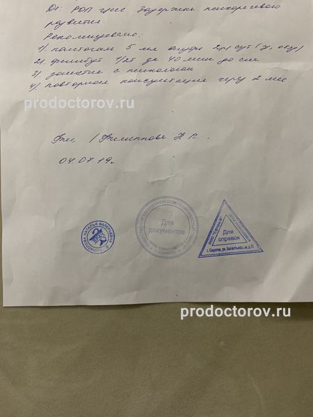 Пришли к Филипповой на приём (за 1890 руб.!), ребёнок 2 года, гиперактивный и ЗРР поставил невролог. Она зачем-то сменила наш энцефабол​ (который назначил невролог) на пантогам​ и фенибут​... В итоге от пантогама пошло перевозбуждение и отказ от сна полностью. Филиппова же нас убедила, что такие симптомы нам точно не грозят. Молодец! Далее, кроме ее «угу», я не услышала ни одной дельной рекомендации! Психиатр должен знать как воздействовать на психику ребёнка помимо лекарств! На простой вопрос: подскажите что нам делать во время истерики и психоза ребёнка, она переключалась на выдержки из научных книг и потом грамотно сливалась. Итог - выброшенные почти 2 тыс.. С таким же успехом мы сходили бы в поликлинику по месту жительства. Зато нас уже записали «заранее, на всякий случай» на приём через 2 мес.. Нет уж, спасибо.