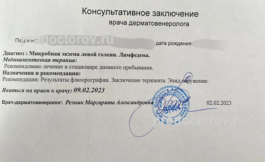 Хочу оставить свой отзыв благодарности от всей нашей семьи. У моего супруга лимфедема. Неоднократно были у различных врачей, но нужного результата не достигали. После лечения боли возвращались вновь. Нам просто посчастливилось попасть на приём к Резник Маргарите Александровне. Это очень серьезный, грамотный, с душой работающий доктор и квалифицированный специалист. Прописанные препараты начали помогать с первого приёма, назначенное лечение значительно улучшило состояние мужа. Спасибо большое нашему доктору за отзывчивость, профессионализм и чуткое отношение к своим пациентам!