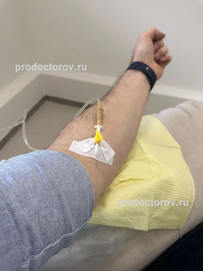 Пришла первый раз в клинику. Подготовили договор и лист с опросом. Помещение просторное, светлое, чистое. Врача ждать не пришлось. Терапевт очень доброжелательная девушка. Все рассказала, показала. Назначила лечение и капельницы​. Медбрат с хорошим опытом работы, капельницы ставит, почти не чувствуешь иглу. Также предлагают чай, кофе.