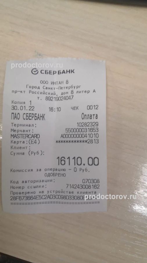 В целом, все прошло хорошо, меня устроило. Сотрудники на ресепшене встретили хорошо, общались вежливо и помогли с оформлением документов. После вышла медсестра и пригласила ребенка в кабинет, отмечу, что мне тоже разрешили присутствовать вместе с ним. Сам прием начался без задержек и времени уделили достаточно, доктор никуда не торопился и все рассказал. Мы добирались в клинику на личном транспорте, но и остановка общественного транспорта находится рядом. "Интан" легко найти, поскольку заметен опознавательный знак в виде вывески. В стоматологии комфортно находиться, здесь есть зона ожидания для пациентов, где можно посидеть на диванчиках, а на входе предоставляются бахилы. Тут допустимо оплатить услуги картой, а также сотрудники заранее позвонили и напомнили о предстоящем визите. Я бы порекомендовала данную клинику другим в случае необходимости.