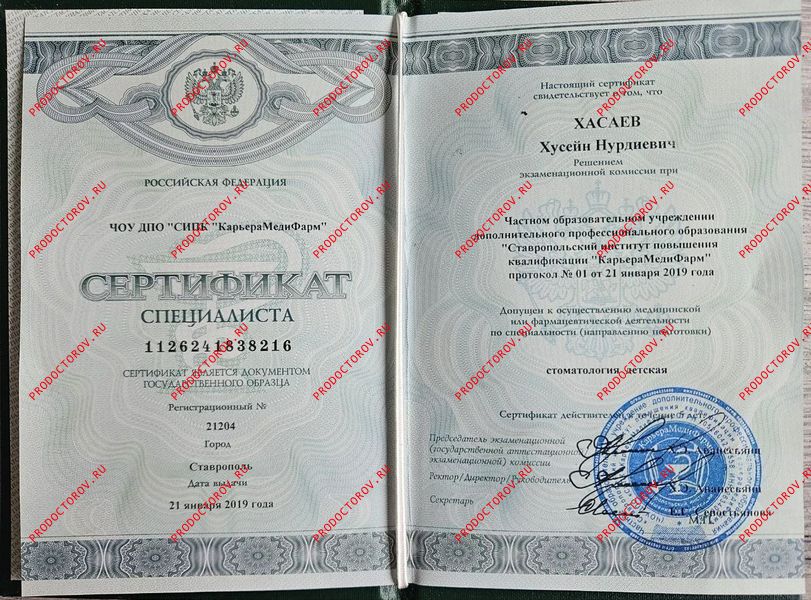 «Стоматология детская. Вопросы детской ортопедии», Ставропольский институт повышения квалификации «Карьерамедифарм»