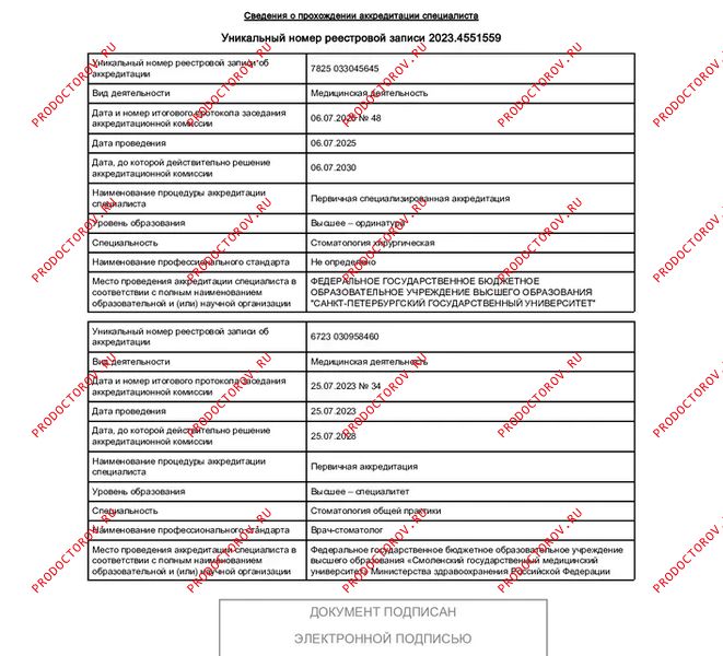 Данные в профиле лечения не подтверждены реальной практикой врача.