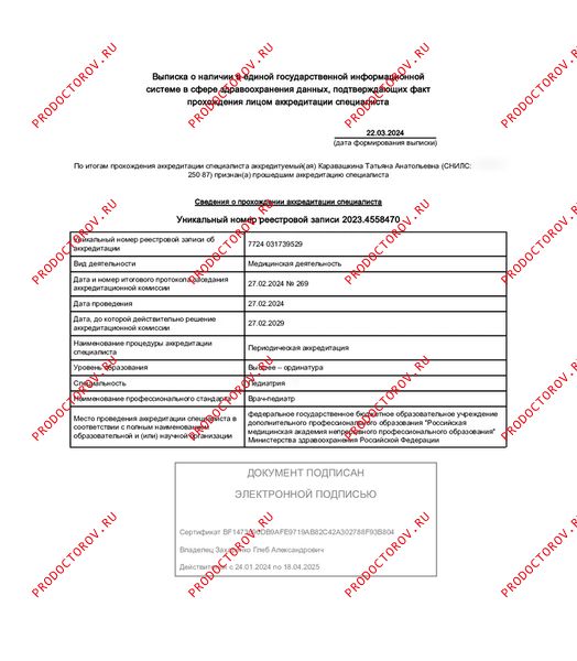 У Каравашкиной Татьяны Анатольевны мы раньше наблюдались, знаем этого специалиста уже год.
