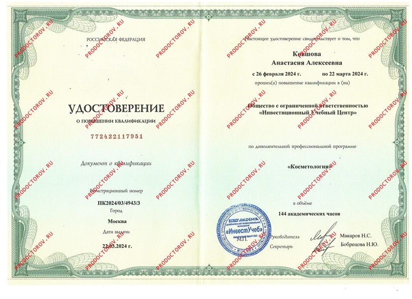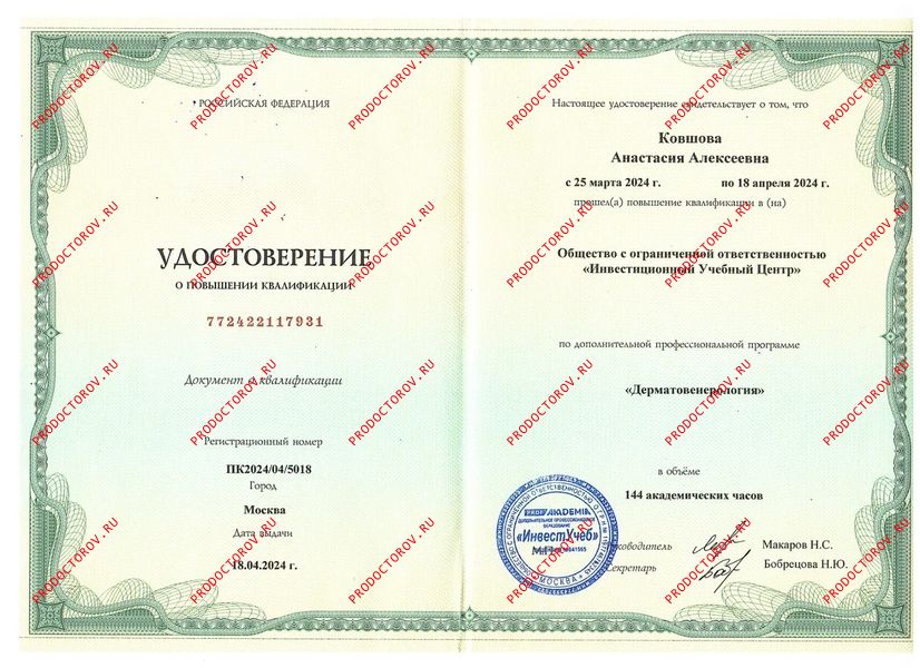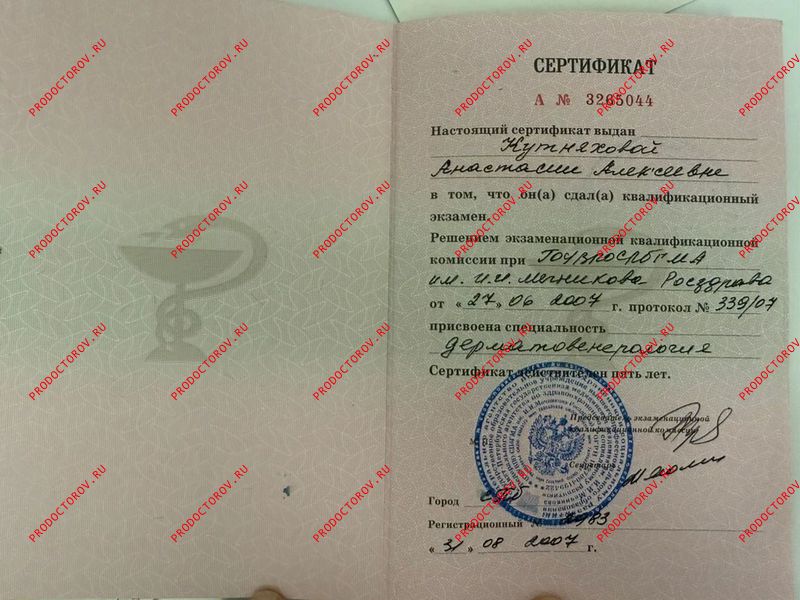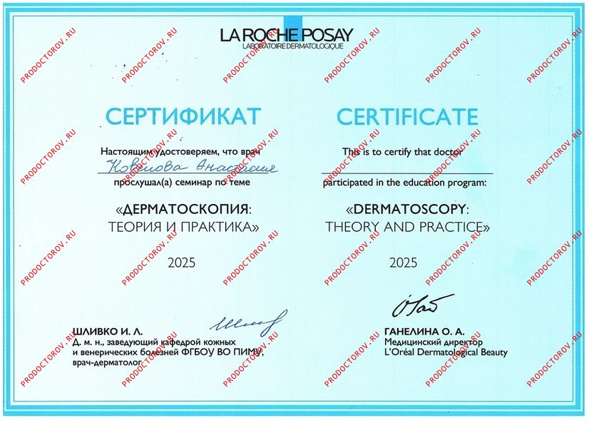 Ковшова Анастасия Алексеевна, Санкт-Петербург: дерматолог, врач-косметолог, 10 отзывов пациентов, места работы, стаж 20 лет, запись на приём ☎ +7 812 604-63-67.