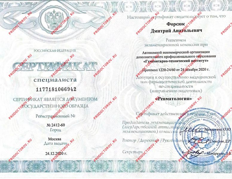 Форсюк Дмитрий Анатольевич, Санкт-Петербург: ревматолог, 48 отзывов пациентов, места работы, стаж 14 лет, запись на приём ☎ +7 812 214-49-34.