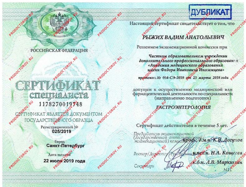К Рыжих Вадиму Анатольевичу я обращался впервые. Нашёл этого гастроэнтеролога в интернете. Выбрал его, ориентируясь на профессионализм и стаж работы.