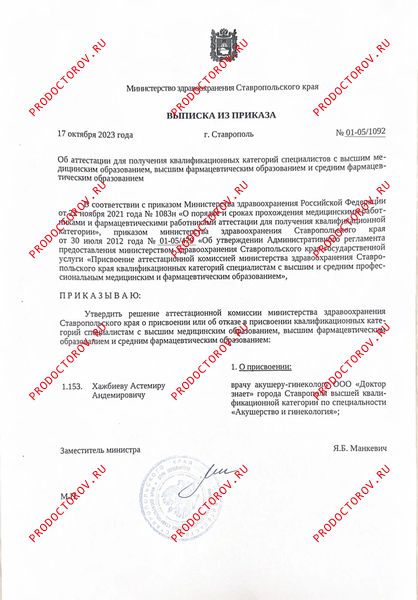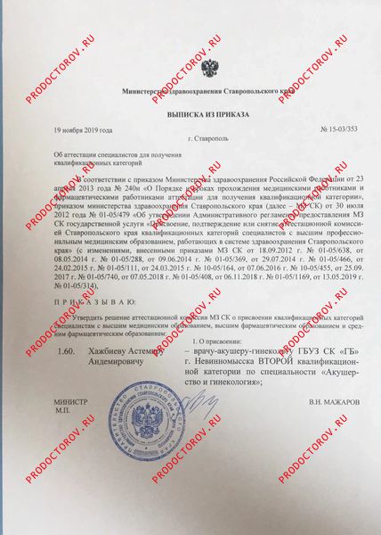 Хажбиев А. А. рекомендует как акушера (13.11.2020)