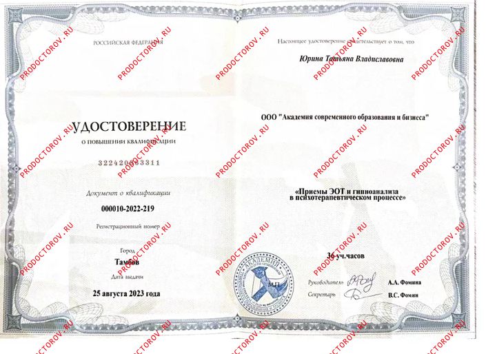 Юрина Татьяна Владиславовна, Тамбов: психолог, 3 отзыва пациентов, места работы, стаж 2 года, запись на приём от 3000 рублей.