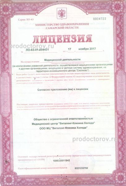 Медицинский центр «Виталонг-Клиника Холода», Тольятти: 8 врачей, 144 отзыва о клинике и ее врачах, цены от 1300 до 2500 руб., запись на приём +7 963 917-11-95, официальный сайт, адрес - Тольятти, ул. Свердлова, д. 24-А.