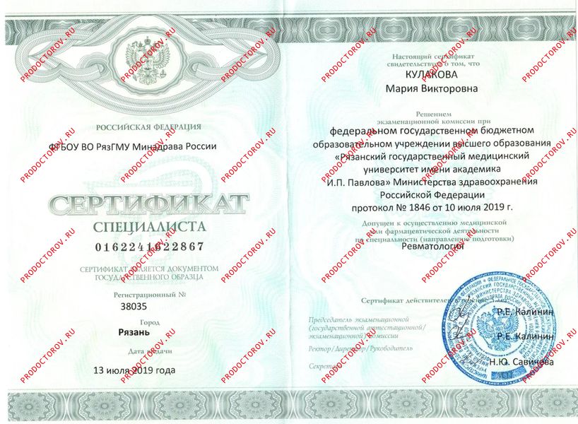 Кулакова Мария Викторовна, Тольятти: ревматолог, диетолог, 2 отзыва пациентов, места работы, стаж 8 лет, запись на приём ☎ +7 846 233-53-32.