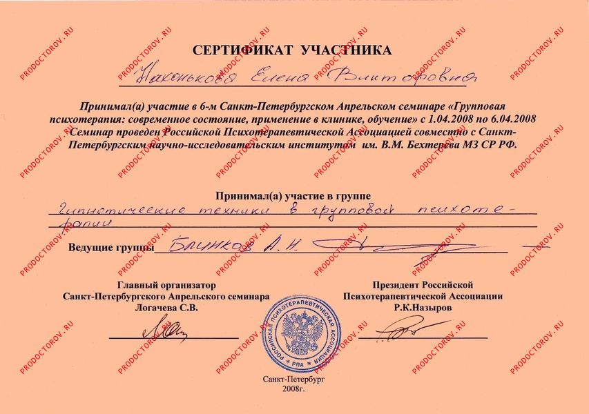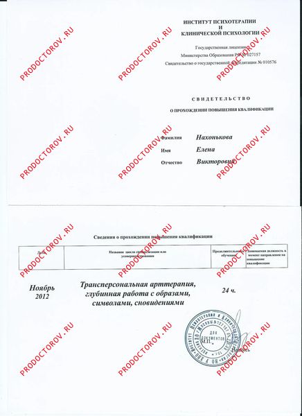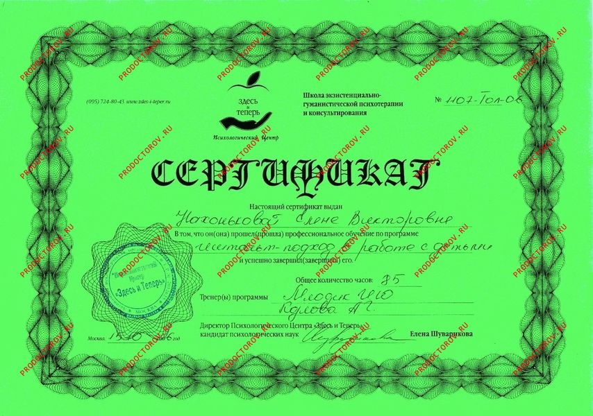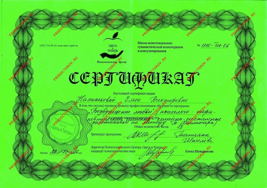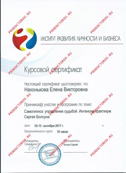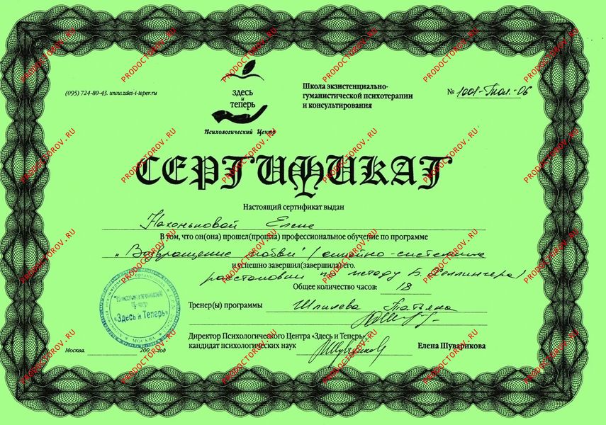 Также мною осваиваются и любимы техники гипнотерапии, где моё обучение помогали осуществлять совершенно замечательные люди и гениальные мастера: Вечаслав Холявко, Томас Брайсон, Александр Блинков, Елена Бархоленко, Фреда Эйдман, Жан Бекио, Сергей Болсун.