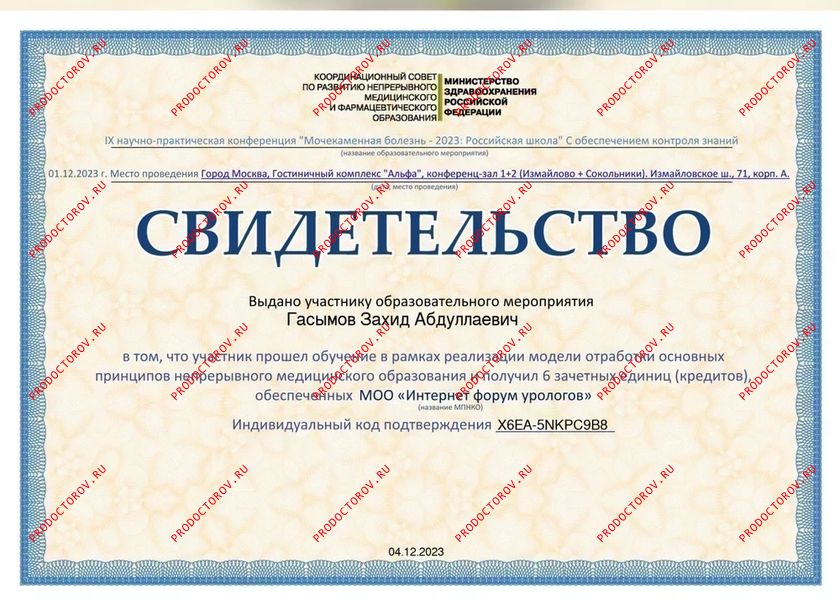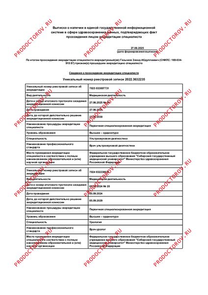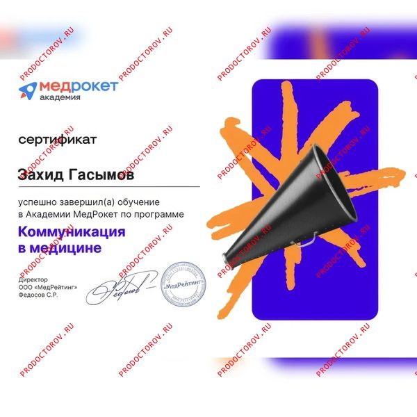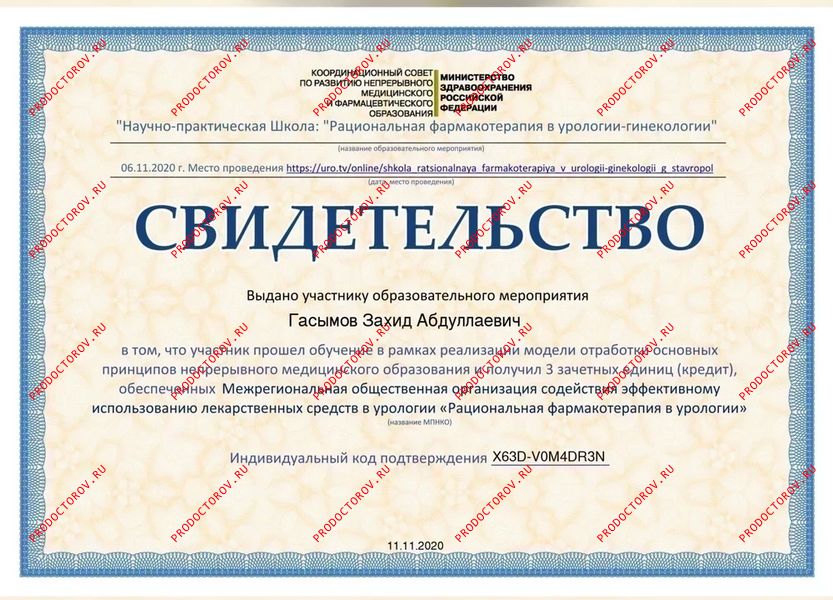 1 место в рейтинге урологов по версии ПроДокторов (2025 г.).