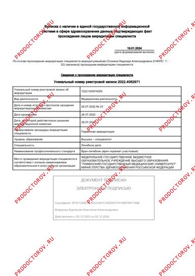 Осокина Надежда Александровна, Тюмень: кардиолог, 1 отзыв пациентов, места работы, кандидат наук, стаж 3 года.