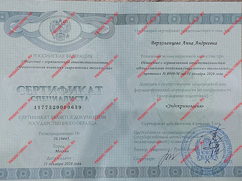 Верхоланцева А.А., врач-эндокринолог (повторный прием)