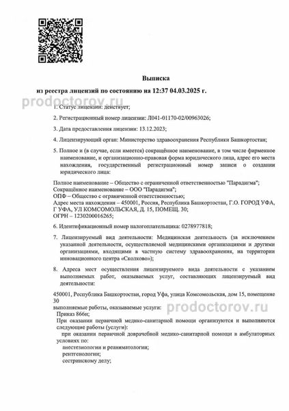 Стоматология «Парадигма», Уфа: 13 врачей, 47 отзывов о клинике и ее врачах, цены от 700 до 700 руб., телефон, официальный сайт, адрес - Уфа, ул. Комсомольская, д. 15.