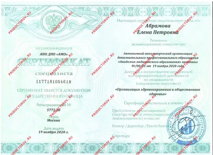 Первичная консультация (осмотр) Главного врача клиники Абрамовой Елены Петровны