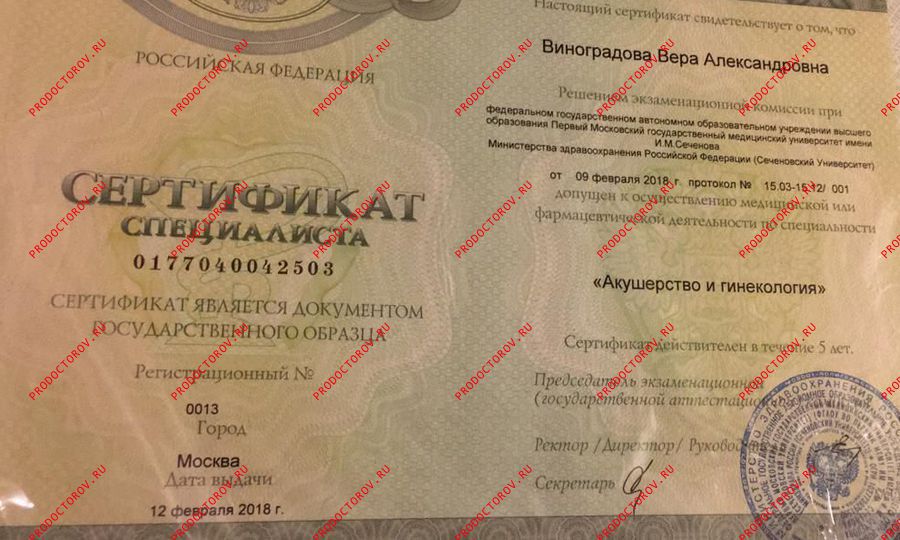 Виноградова Вера Александровна, Воронеж: гинеколог, акушер, репродуктолог, 104 отзыва пациентов, места работы, стаж 19 лет.