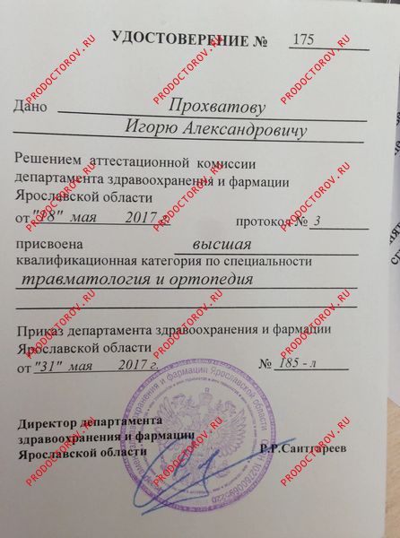 Прохватов Игорь Александрович, Ярославль: травматолог, ортопед, 100 отзывов пациентов, места работы, высшая категория, стаж 19 лет, запись на приём ☎ (4852) 60-76-38.
