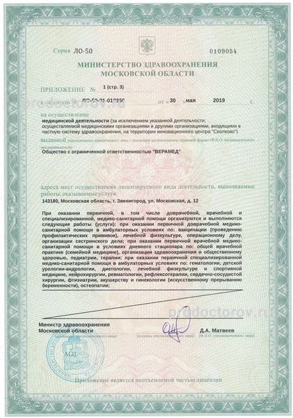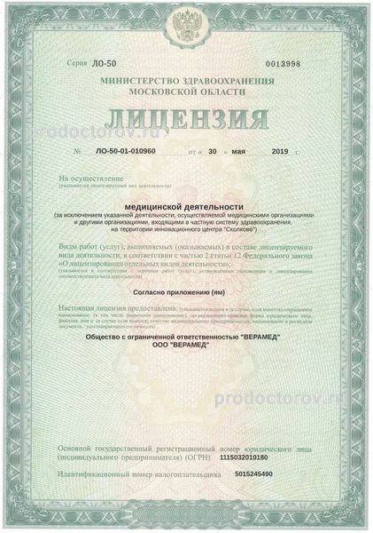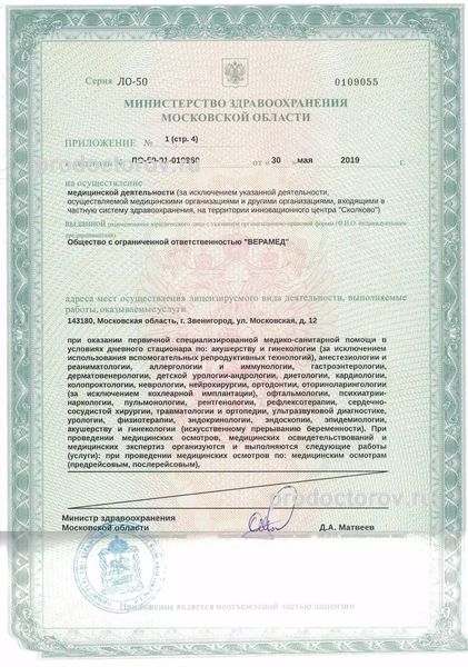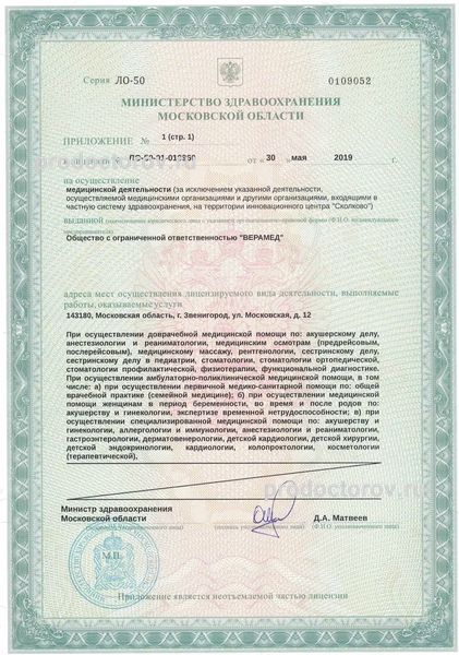 Медицинский центр «Верамед» города Звенигорода оборудован высококачественной аппаратурой. Врачи имеют большой опыт практической деятельности. Услуги медицинского центра «Верамед» платные.